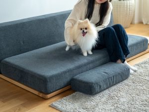 「Fumi」のソファシリーズは、デザイン性の高さはそのままに、小型犬の安全を考慮した「ロータイプ」への切り替えが可能です。