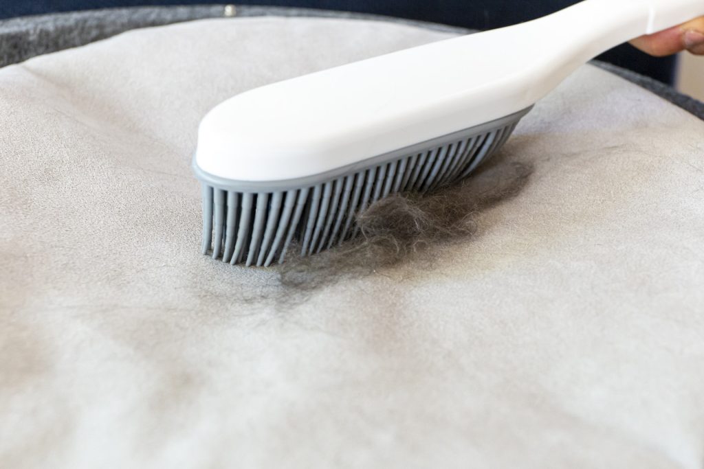 換毛期の抜け毛対策には、毛が生地の奥に入り込まず、粘着ローラー(コロコロ)や掃除機で表面の毛をサッと取り除ける素材が理想的です。