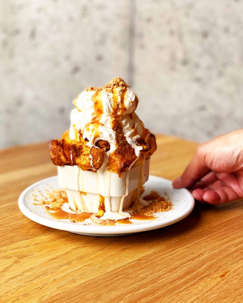 オリジナルスイーツ:人気の「ブレッドココット」や「キャラメルパフェ」、季節のドリンクなど、見た目にも美しいメニューが揃います。