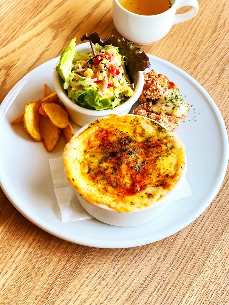 絶品ランチメニュー:ハーブから育てて作る「シーフードライスカレー」や、ファンも多い自慢の自家製ホワイトソースを使用した「ドリア」など、どれも本格的な味わい。