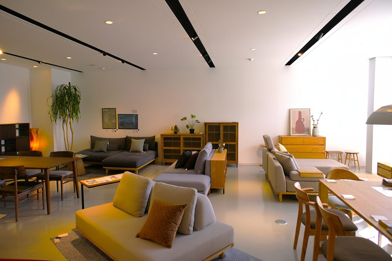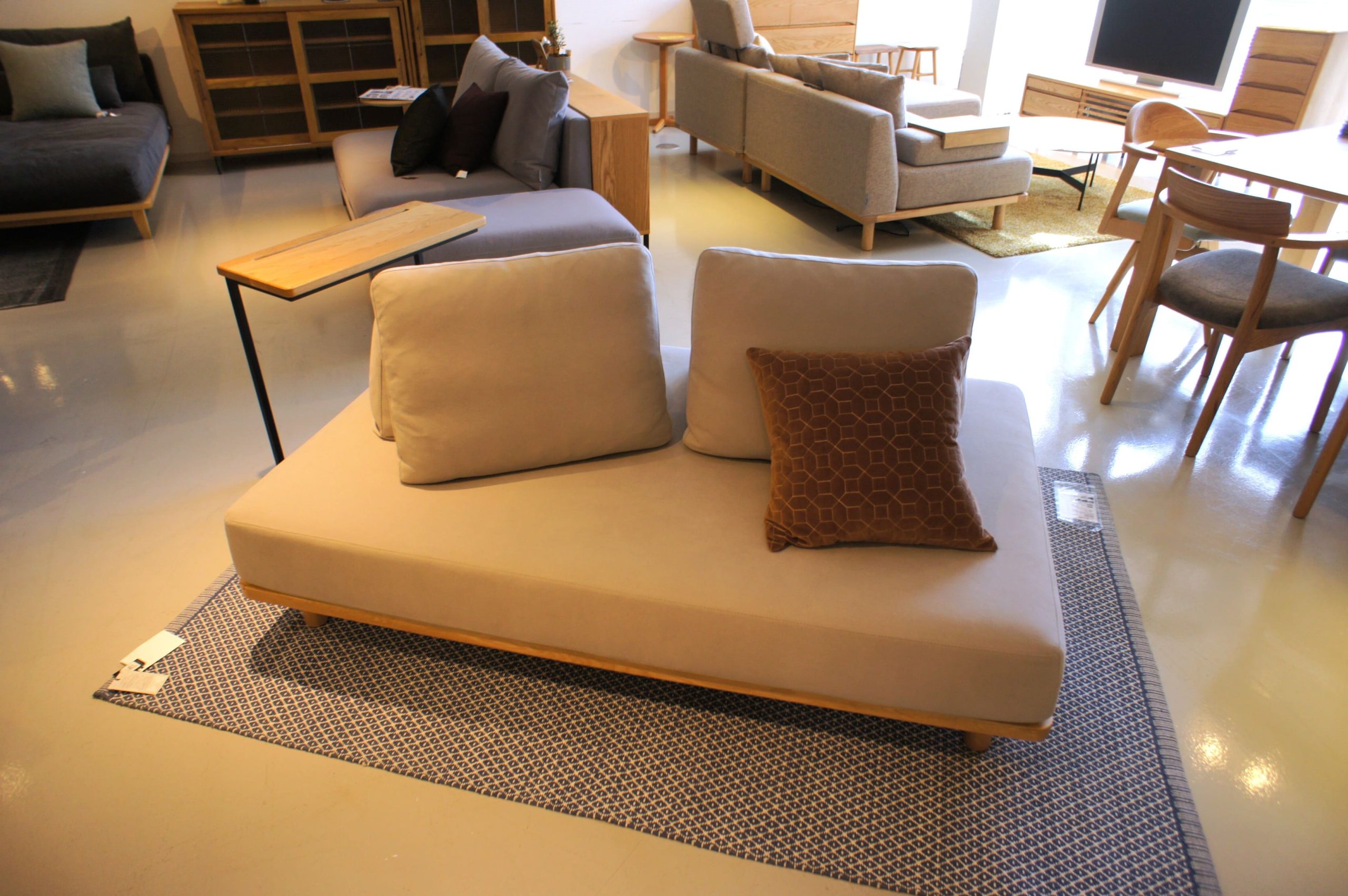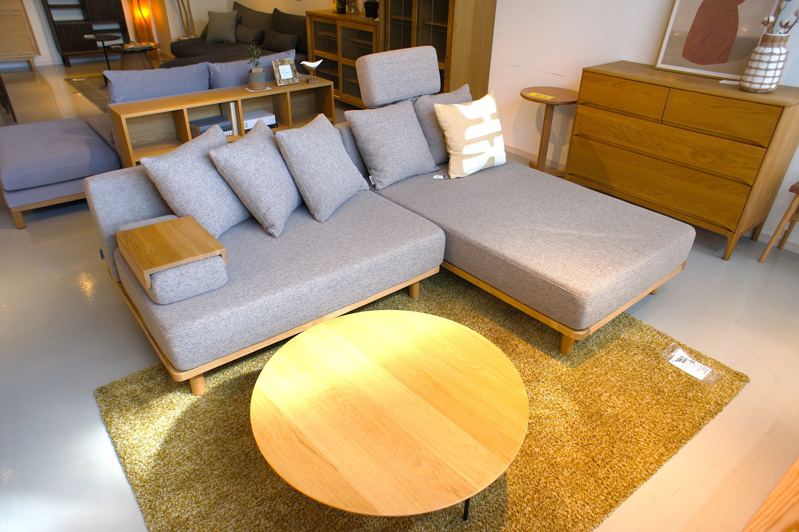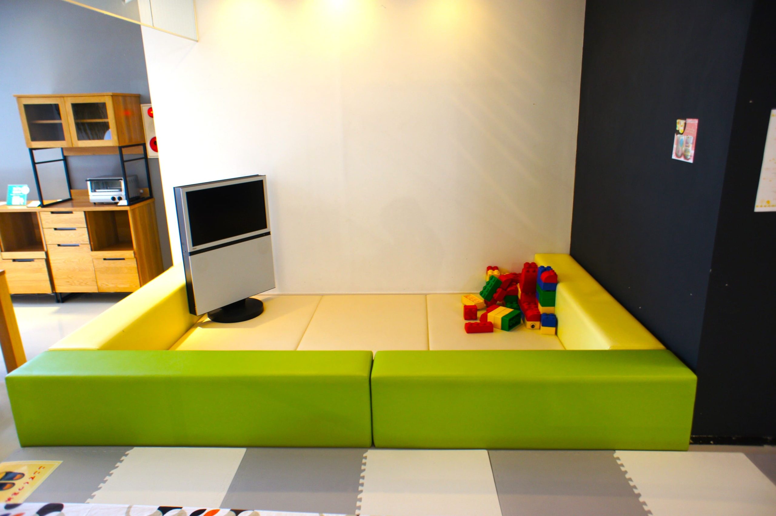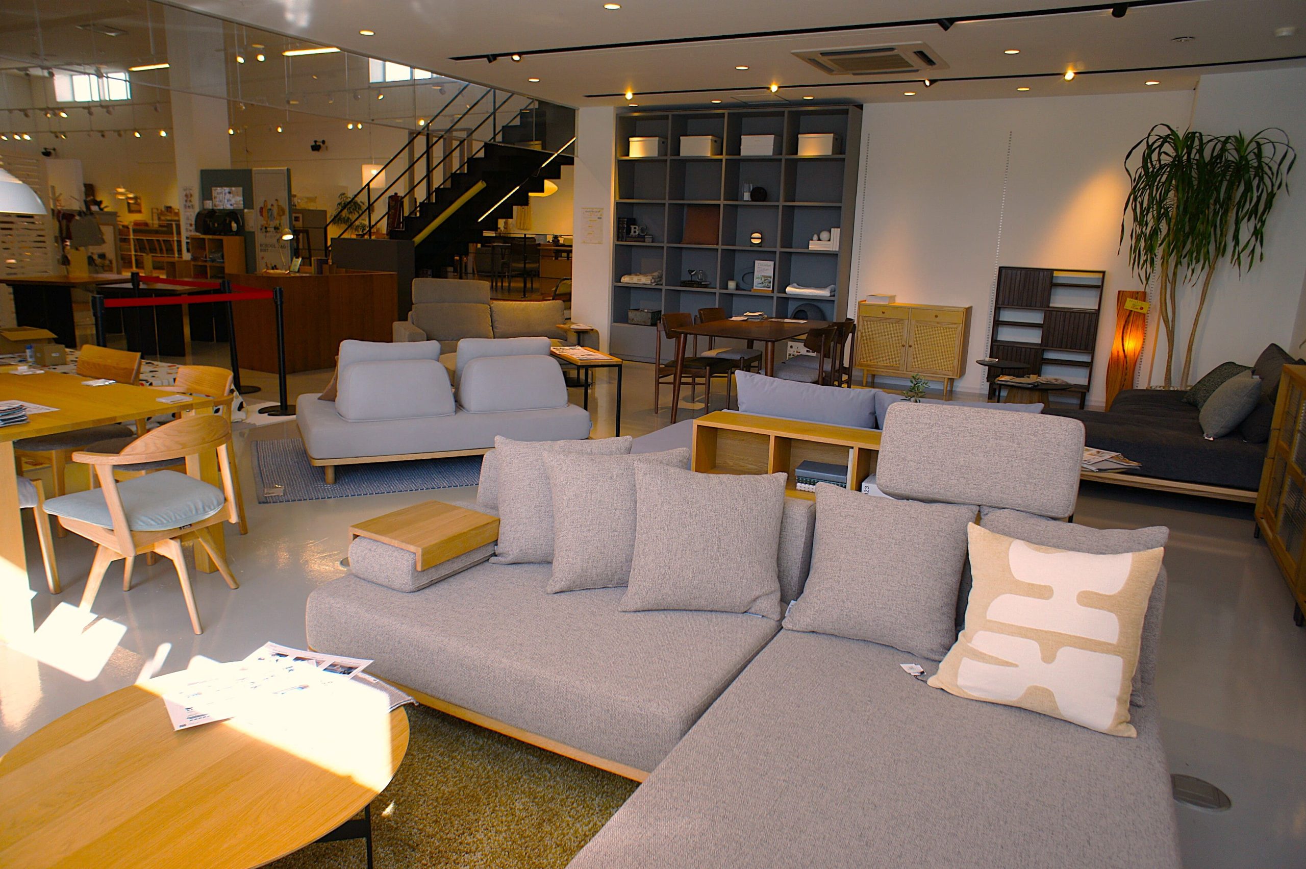 高い天井とゆとりのある通路、そしてセンス良くコーディネートされたディスプレイ。まるで誰かのおしゃれな邸宅に招かれたような居心地の良さがあり、時間を忘れてゆっくりと家具選びを楽しむことができます。お子様連れの方も安心して滞在できるようキッズスペースが完備されているのも、嬉しい配慮です。