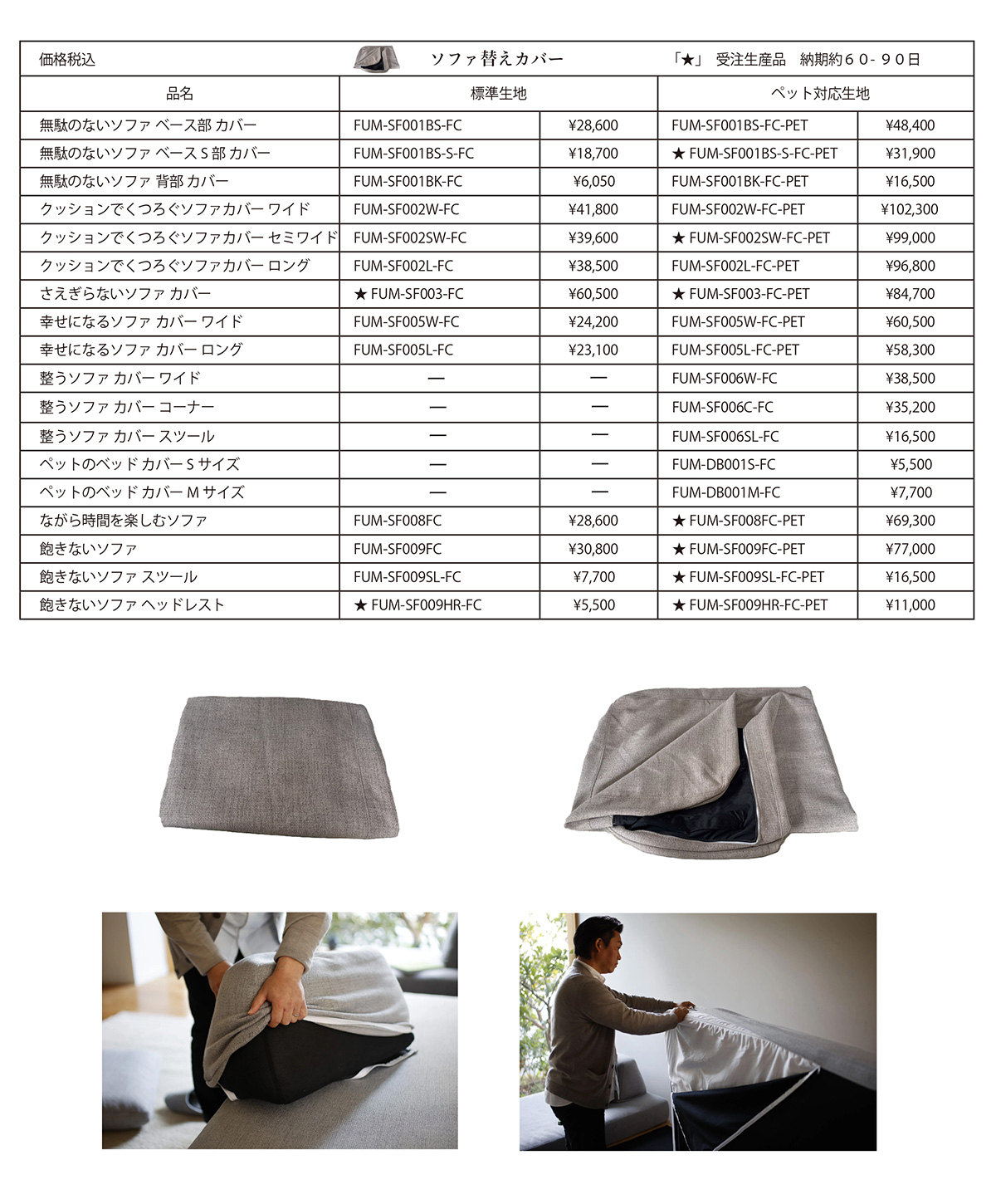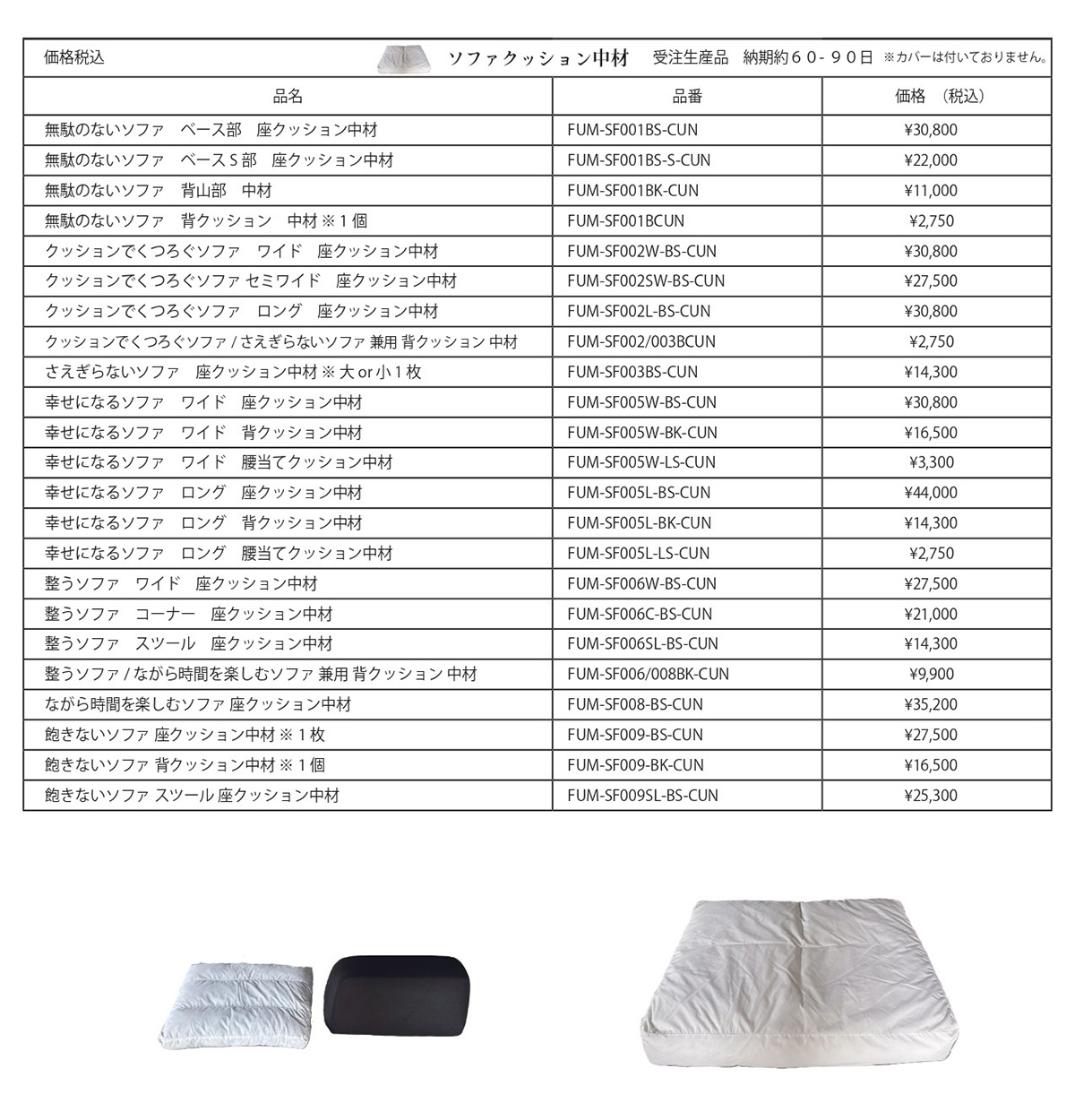 Fumiソファはお客様に末永くソファをご愛用いただけますよう、「消耗部位のパーツ」を交換用としてご購入いただけます。